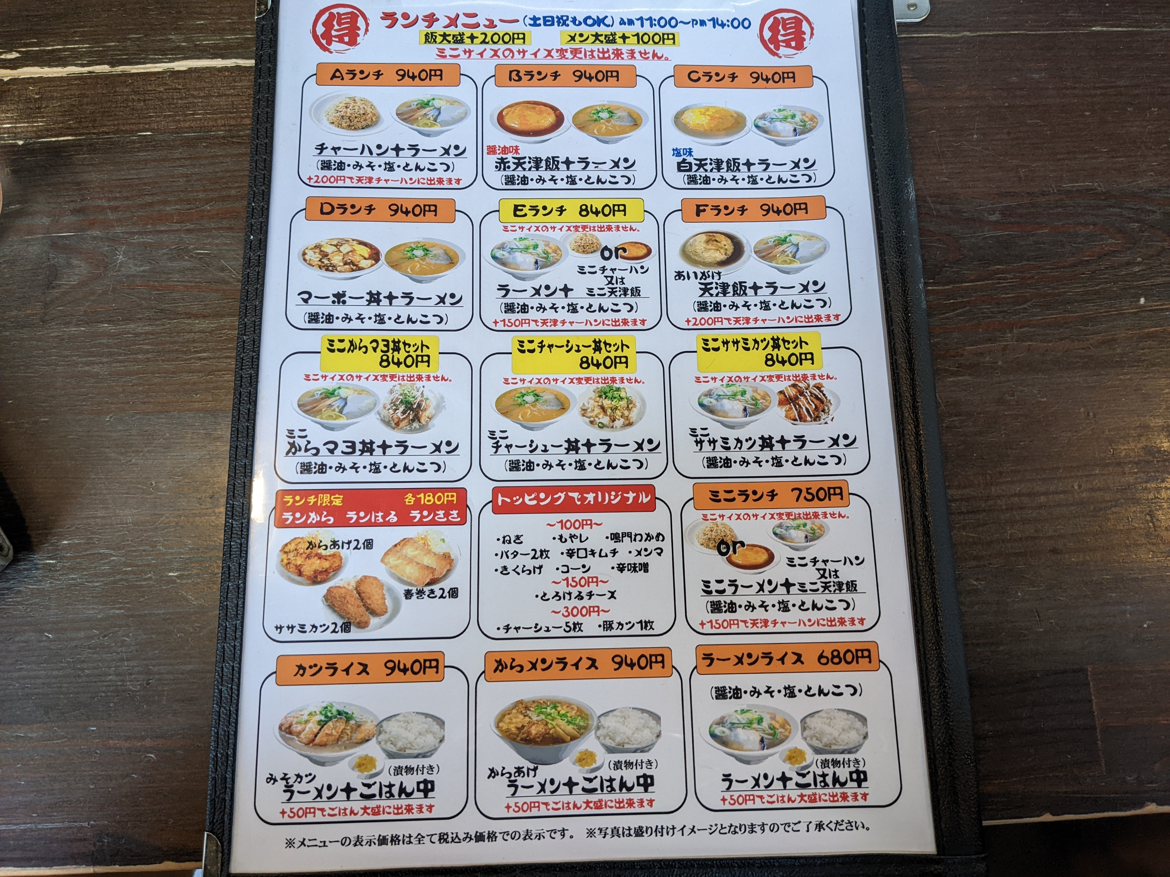 ランチタイムメニューもあります。