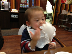 全く関係ありませんが、ワタアメと息子の写真を載せてみます。