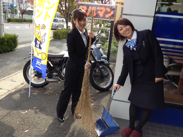 毎年の事ですが、レインボーロード店の店頭は街路樹の落ち葉で賑わいます。