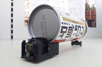 車体の約5倍はあるコンテナ(缶コーヒー)を運びます。